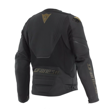 La Racing 5 Leather Jacket di Dainese è una giacca moto estiva in pelle Tutu da 1,2 mm, con protezioni CE EN1621-1 Livello 2 e compatibile con airbag.